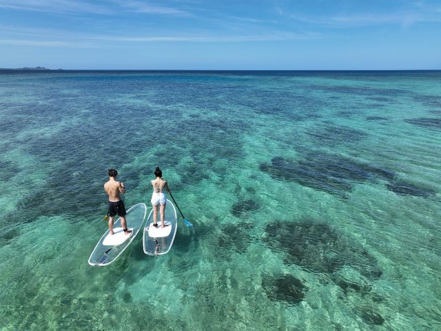 クリアSUP体験 透明のクリアボードで海の中を見ながらSUPを楽しもう♪ ドローンオプションあり!<午前・午後 石垣島南部送迎可 石垣島>by マーレ 石垣島石垣島・八重山の観光・オプショナルツアー専門 VELTRA ベルトラ。
