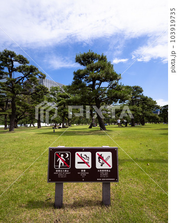 皇居外苑 芝生広場での禁止事項が書かれた看板の写真素材103919735- PIXTA。