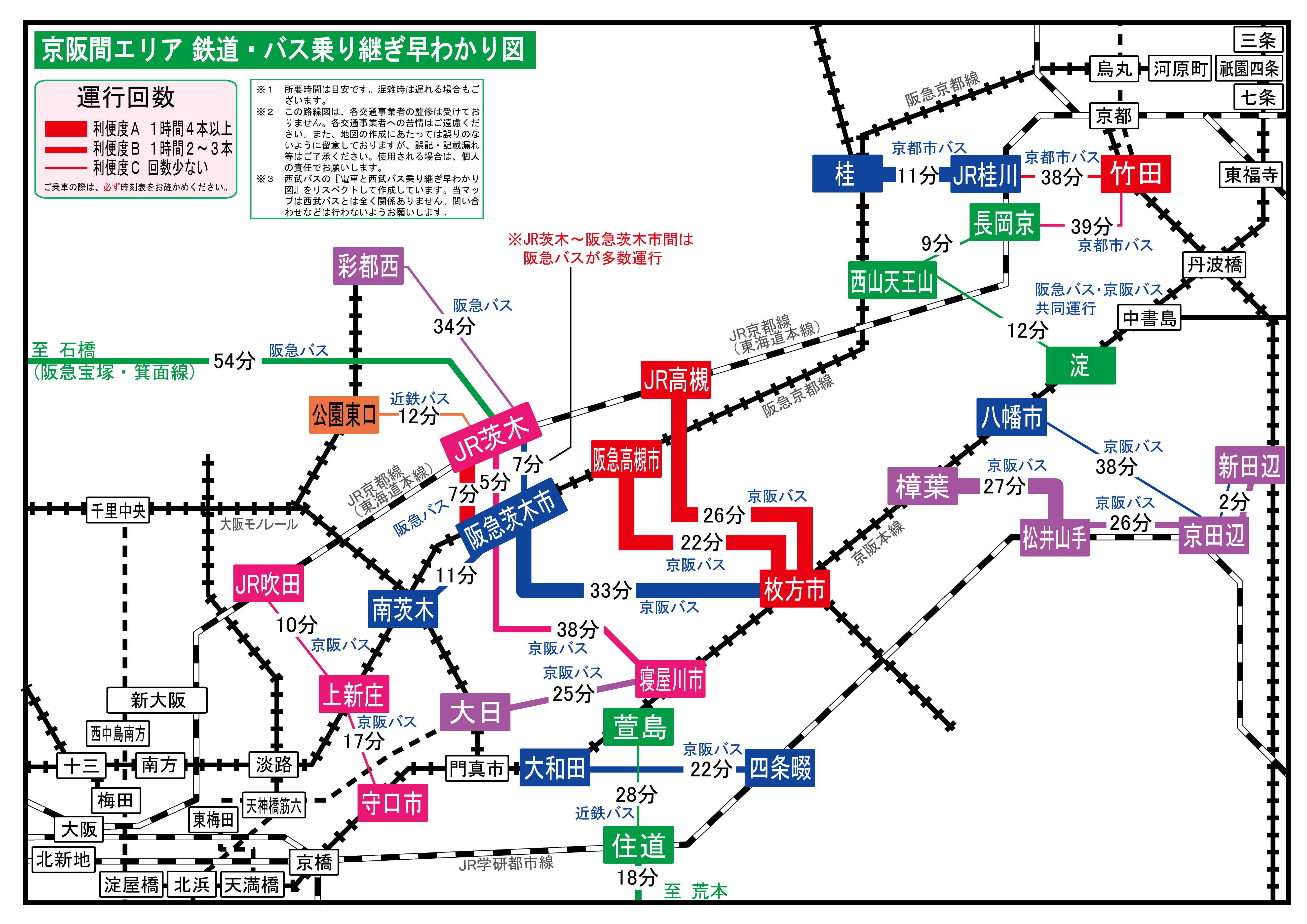 京阪間エリア 鉄道・バス乗り継ぎ早わかり図 – 旅とまちなみとパインどうでしょう~。