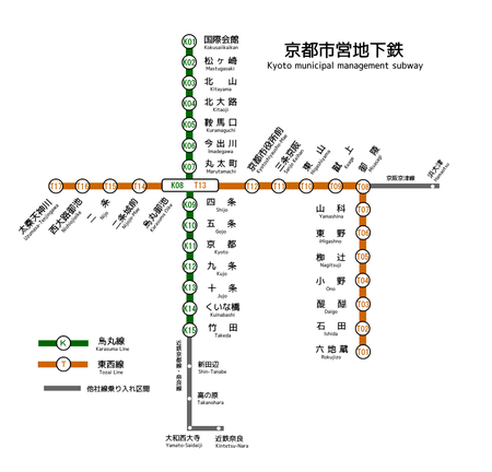 路線図 配線略図 京都市営地下鉄 烏丸線・東西線Osaka Metropolis。