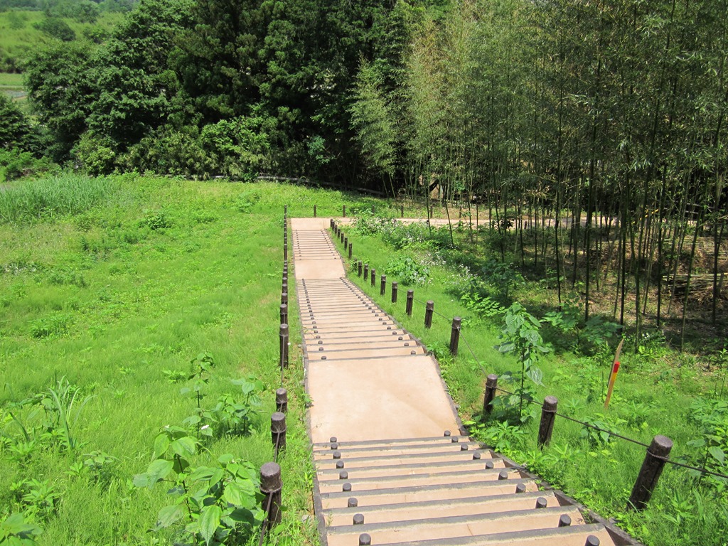 施工現場紹介>長い階段とスロープのある施工事例透水性舗装・保水性舗装の三和グランド。