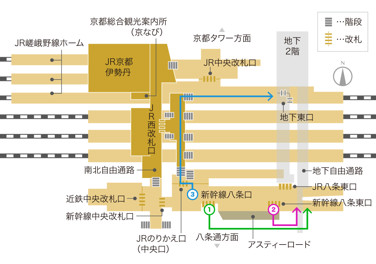 京都駅の八条口 構内図をマップと写真で解説 改札や周辺の地図も。