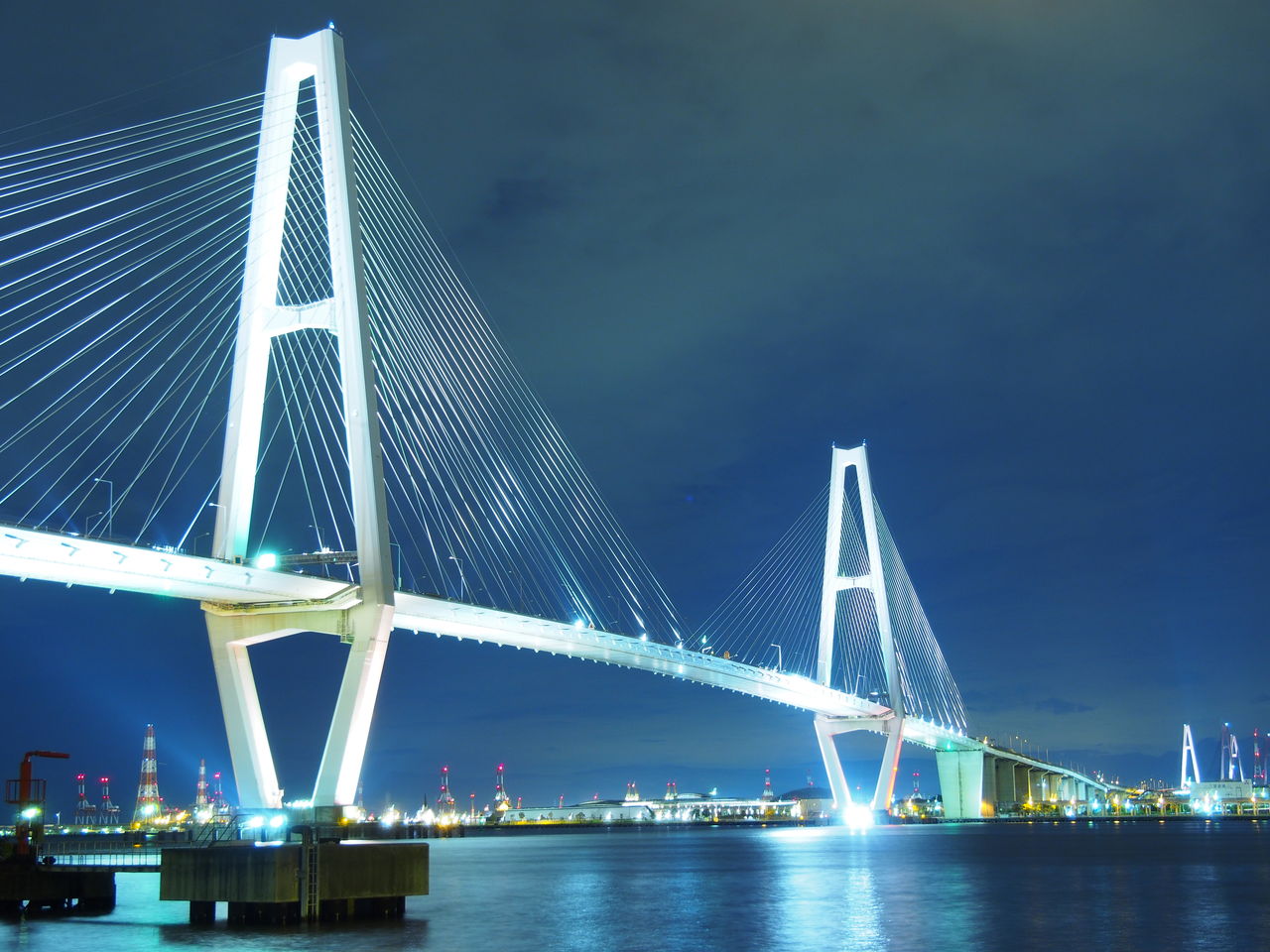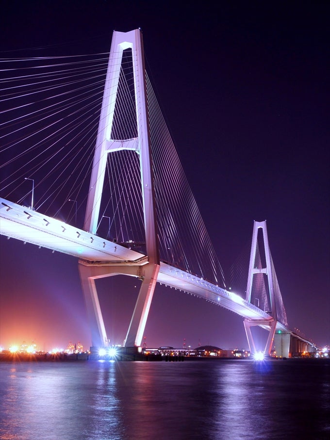 名港トリトン:ライトアップされた橋と工場夜景 - TRIPROUD。