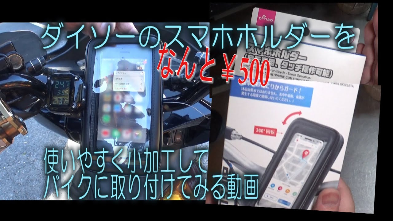 A video showing how to use a Daiso 500 yen smartphone holder on amotorcycle and make small modif- YouTube。