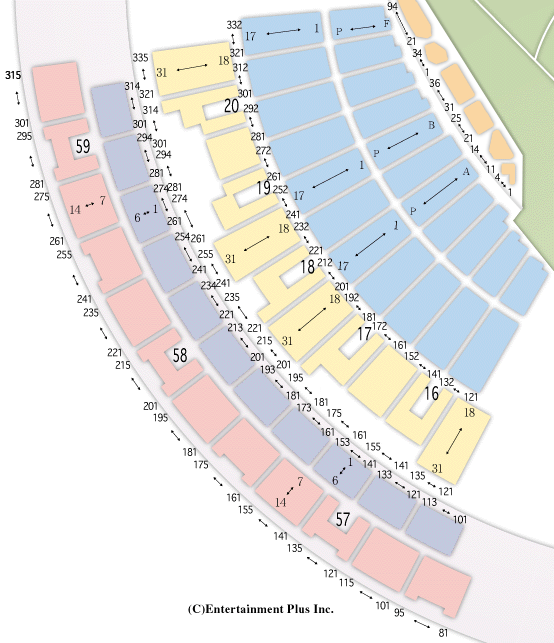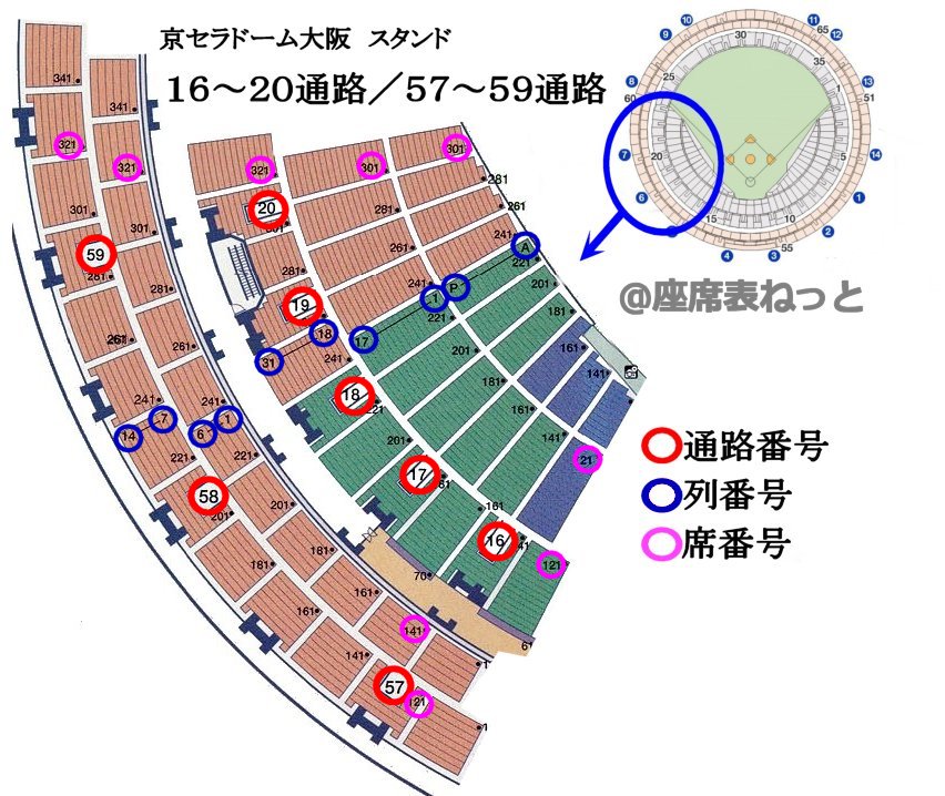 京セラドーム大阪座席表 16~20通路 57~59通路。