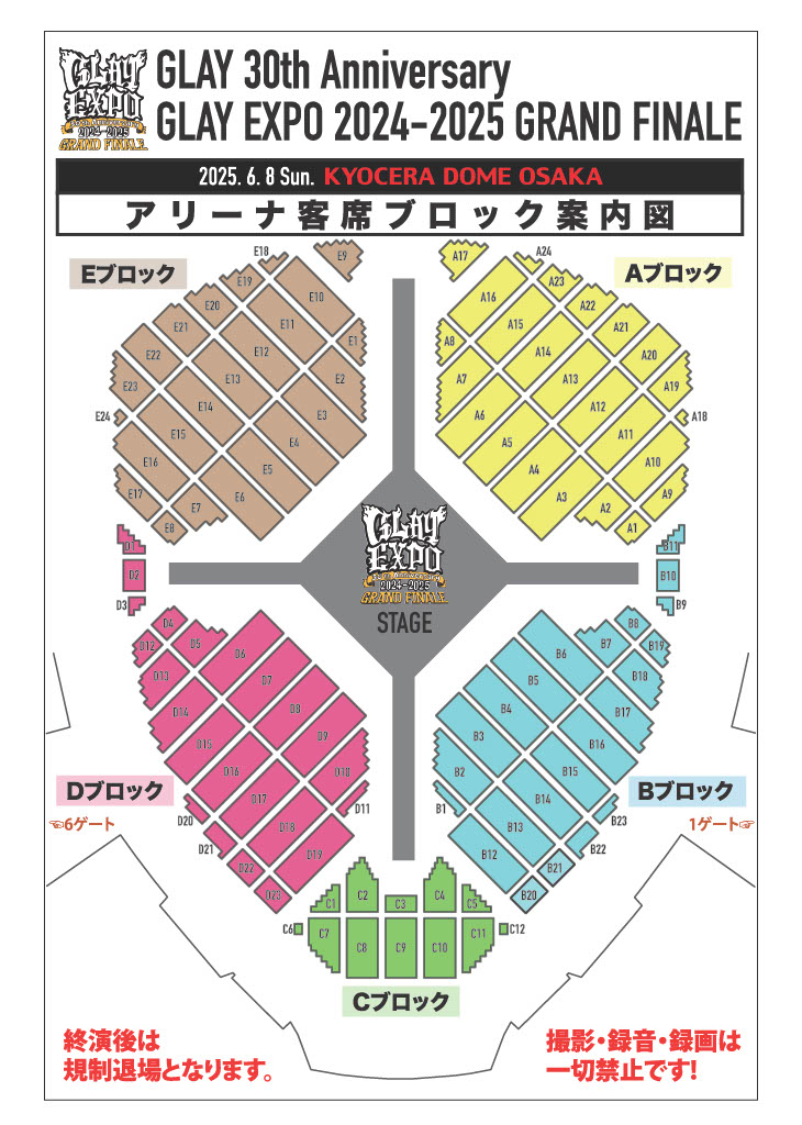 開催直前情報!京セラドーム大阪公演へご来場の皆様へ、アリーナ座席表を掲載しました。GLAY公式サイト。