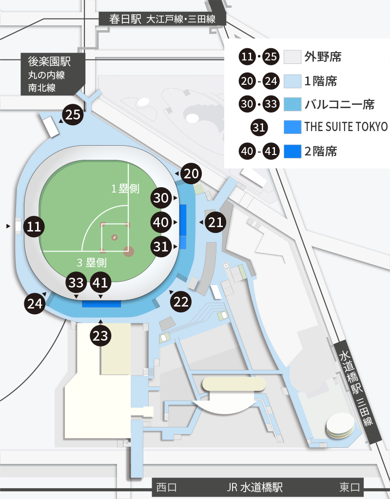 東京ドームのアクセスや座席表などの基本情報ライブ基地。