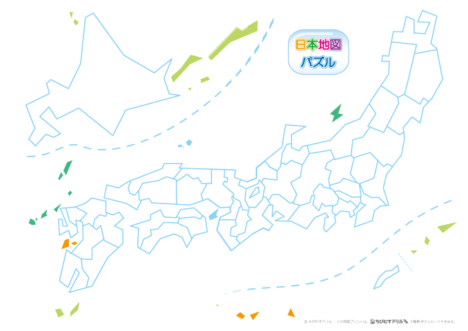 都道府県パズルすごろく 地図記号入り無料ダウンロードちびむすドリル 小学生。