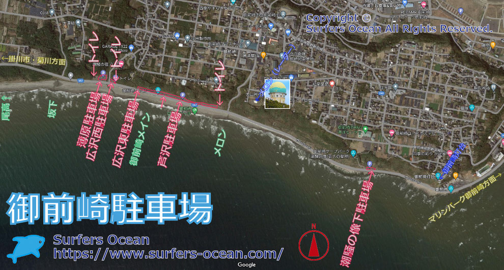 御前崎、静波、相良の駐車場、規制情報 6 6WATERS boutique of surfing。