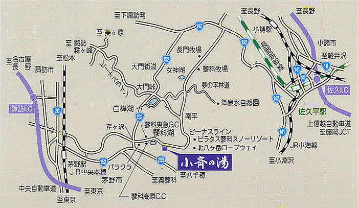 蓼科 旅館 蓼科高原の温泉宿 小斉の湯 交通の案内。