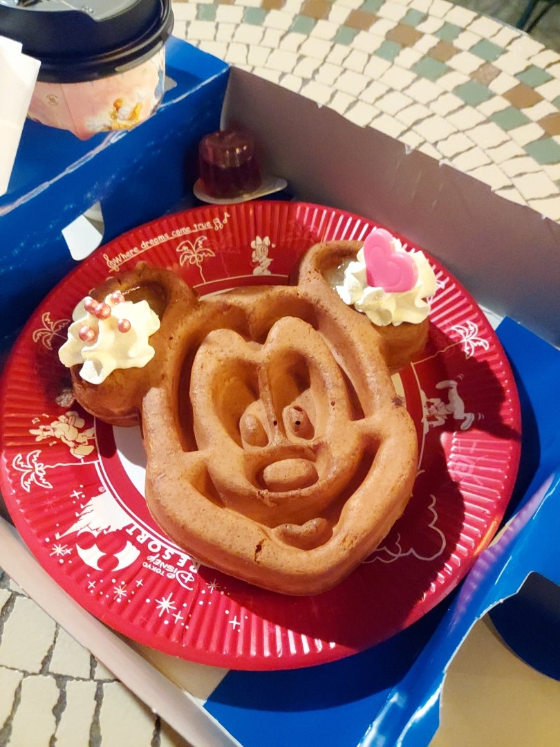 Tokyo Disneyland グレートアメリカン・ワッフルカンパニー 🐭ミッキーワッフル ストロベリーホイップとメイプルソース付き-—*-—*-—*-—* * * *千葉観光関東カメラ部東京ディズニーランドjapantraveljapanphototokyodisneylanddisneydisneyparks。