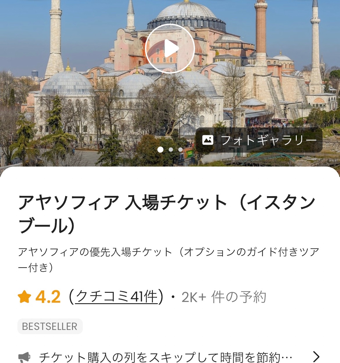 アヤソフィア ガイド付きツアーオプションのチケット付きKlook。