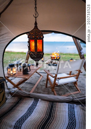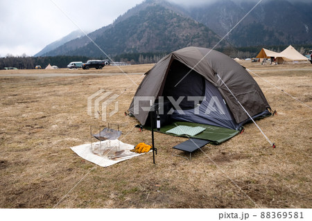 キャンプ ソロキャンプ 野営 無骨 キャンプレイアウト テント設営 焚き火台 コピースペースの写真素材90629694- PIXTA。