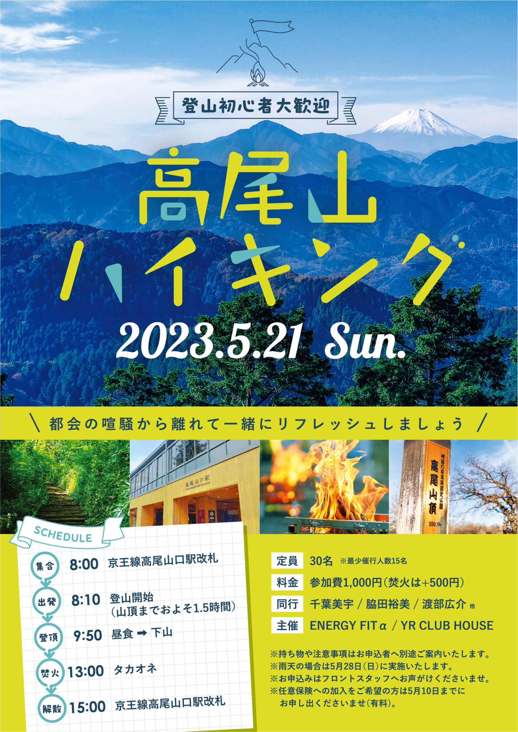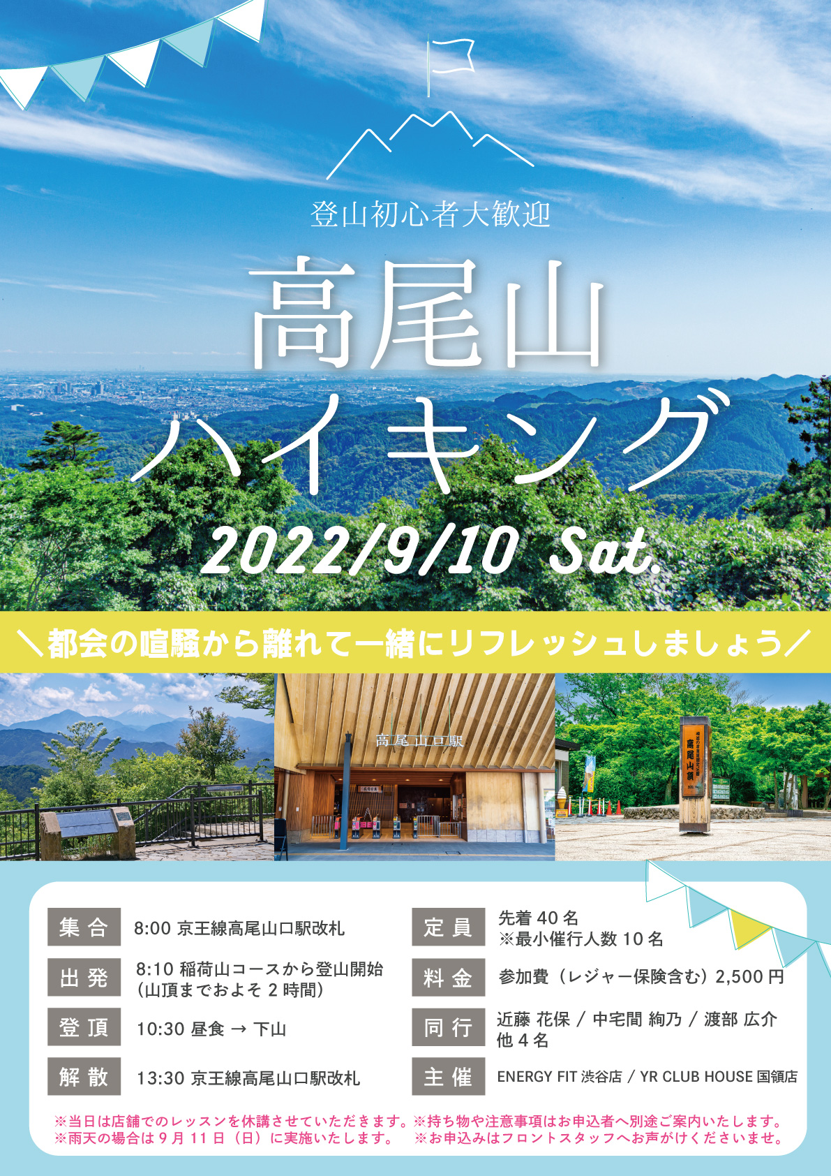 第二回高尾山ハイキングイベント開催YRクラブハウス ヨガ & ラン 女性の体を整える新しいスタイルのジム。