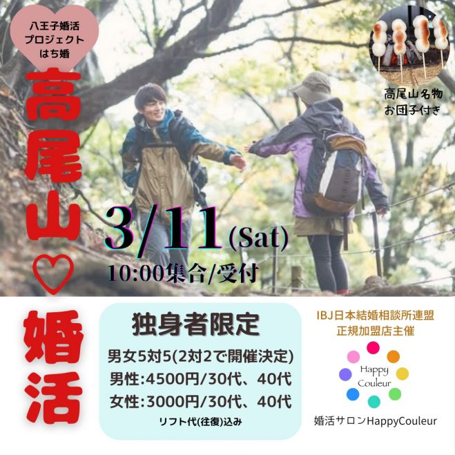 東京都 八王子 2022 11 26土 開催の婚活パーティー - 一人参加限定 自由に楽しむ!高尾山ハイキング好きで山登りと紅葉を楽しもう☆ IBJMatching 婚活パーティー・街コン運営サイトのIBJマッチング。