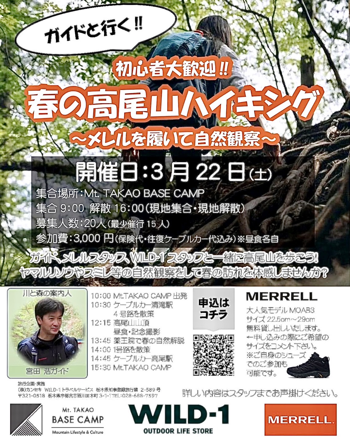 初心者大歓迎!!春の高尾山ハイキング〜メレルを履いて自然観察〜Mt.TAKAO BASE CAMP 高尾ベース。