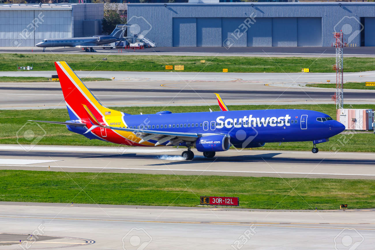 カリフォルニア州サンノゼ-2019年4月11日:カリフォルニア州サンノゼ空港SJC にあるサウスウエスト航空のボーイング737-800型機。ボーイングは、シカゴに本社を置くアメリカの航空機メーカーです。の写真素材・画像素材Image 158011905。