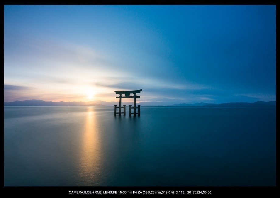 滋賀の日の出撮影スポット 白髭神社 にて 海中鳥居 を写真撮影αのEVFが見せる世界。
