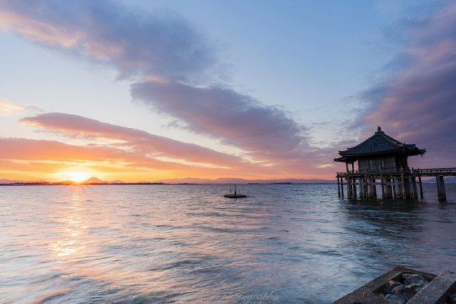 浮御堂と日の出2018年 春コンテスト滋賀・びわ湖 虹色フォトコンテスト。