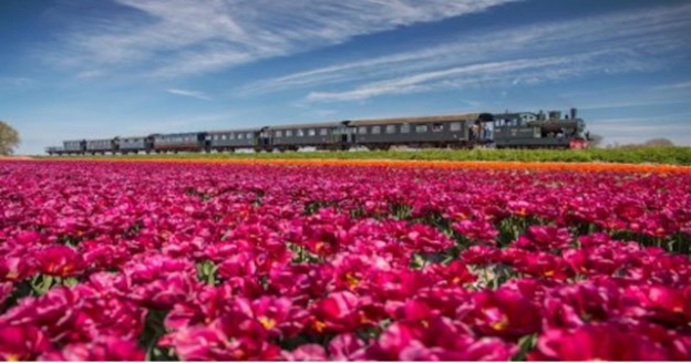 お花畑の中を走るオランダのミニS L-ヨーロッパ絶景鉄道の旅編 その4たまの旅日記千葉県船橋市の旅行代理店 D.T.I.ツアーズ。