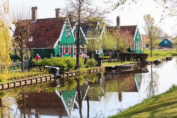 緑色の可愛らしい家々が並ぶオランダの明治村、ザーンセスカンス今日の絶景。