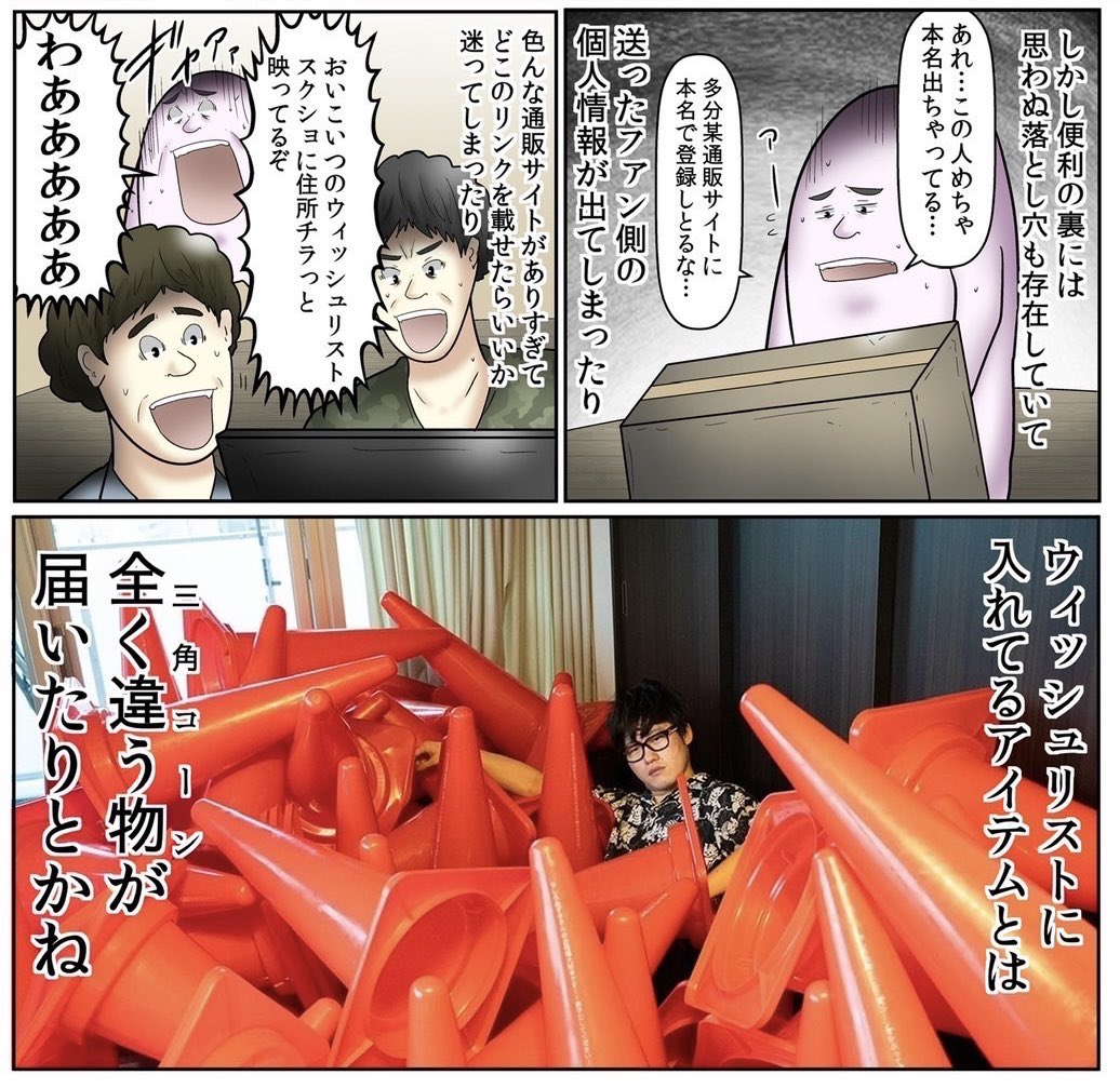 やしろあずきさんが誕生日にAmazon欲しいものリストを晒したところ見事に三角コーンが4つ届いたもよう - Togetter。