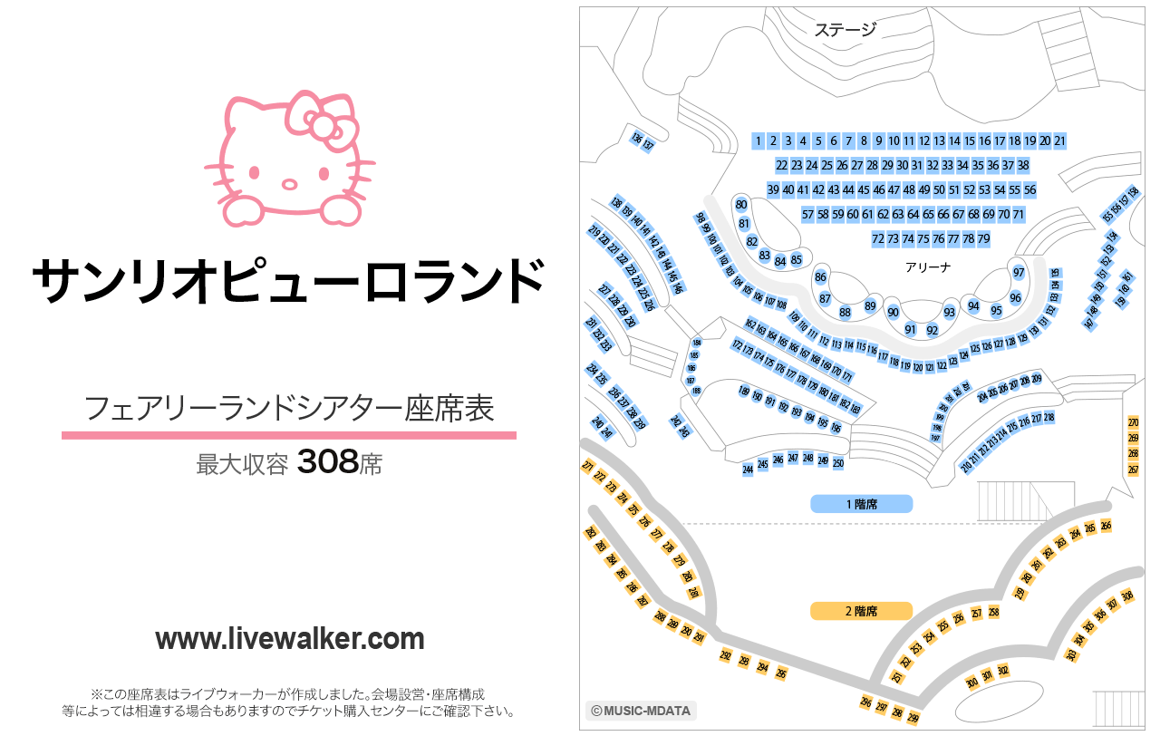 サンリオピューロランド メルヘンシアターの座席表315席。