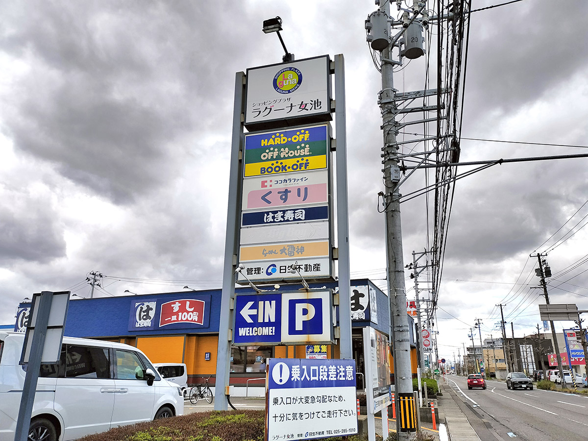 j-rakuda on X: "新潟市紫鳥線沿いラグーナ女池。2009年ウオロク女池 店西側のパチンコ店跡地にオープン。ブックオフやココカラファインのほかはま寿司などの飲食店で構成。旧きんしゃい亭の棟はオープン以降テナントの入れ替えはあるが人口集積地でもあり ウオロク隣接の好。