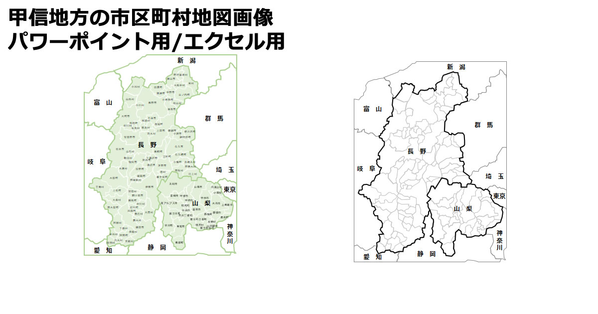 甲信越地方の市区町村地図 パワーポイント エクセルフリー素材、無料素材のDigipot。
