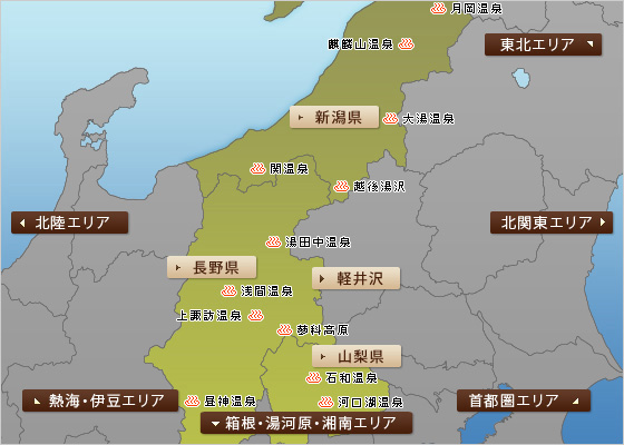 甲信越エリアマップ日本厳選!おとなの宿泊予約サイト エアトリプレミアム倶楽部。