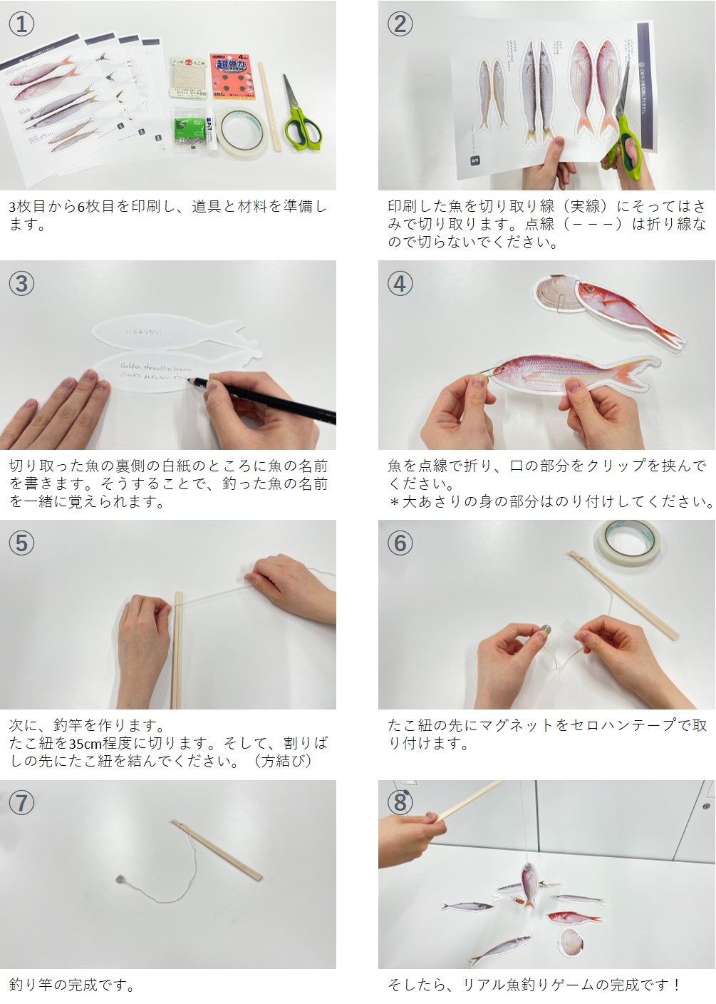 型紙付き 魚釣りごっこで遊ぼう!お魚&海の生き物製作HOKET MAGAZINE子ども向け工作・ワークショップ情報株式会社HOKET。