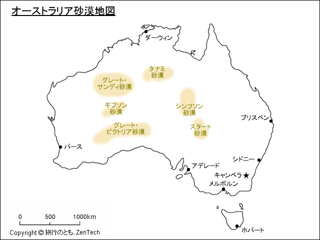 オーストラリア砂漠地図 - 旅行のとも、ZenTech。