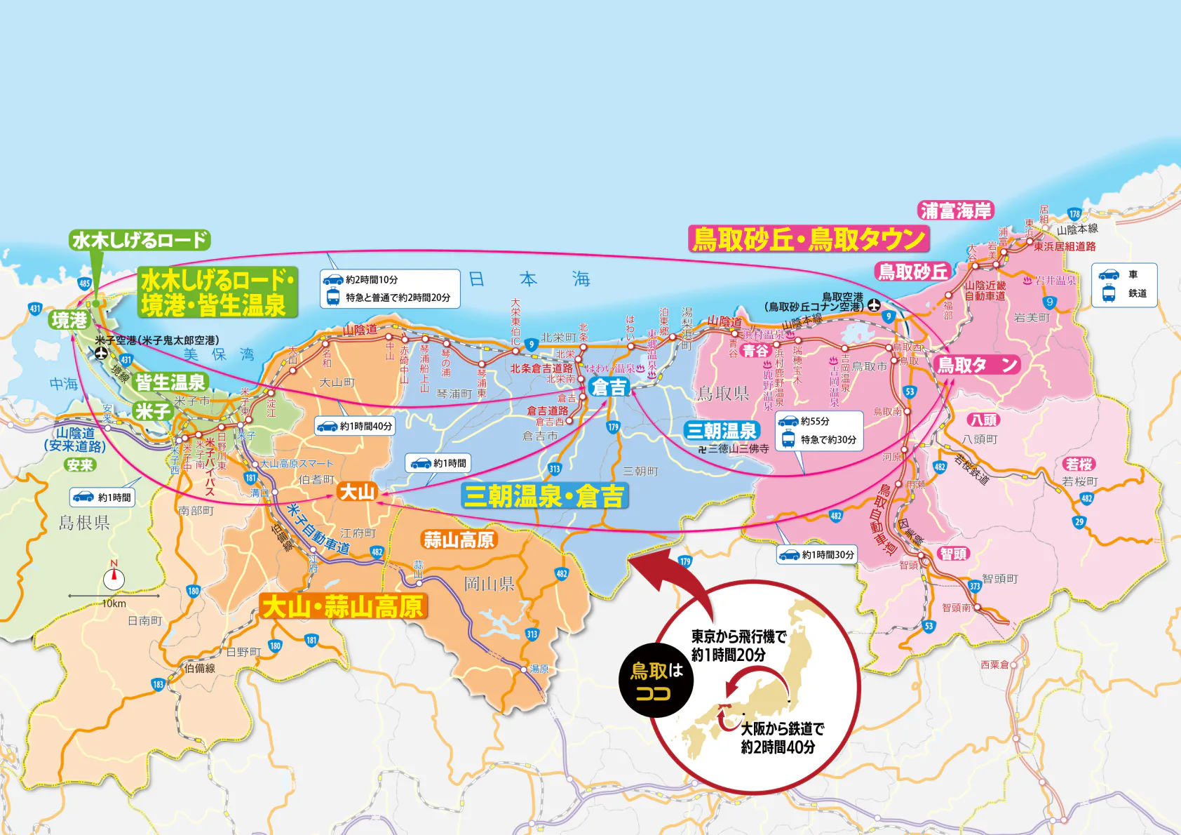 鳥取・岡山ドライブマップ 倉敷てくてくマップ 鳥取・島根県 山陰路ハイウェイマップ «。