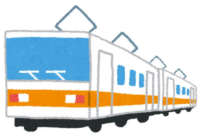 電車のイラスト「黄緑・オレンジ・赤・青ライン」かわいいフリー素材集 いらすとや。