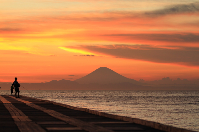 館山夕日桟橋 千葉県館山市館山 夕焼けの海に沈む夕日と富士山の絶景を望む 海釣りもできる日本一長い桟橋 - Sumai架け橋。
