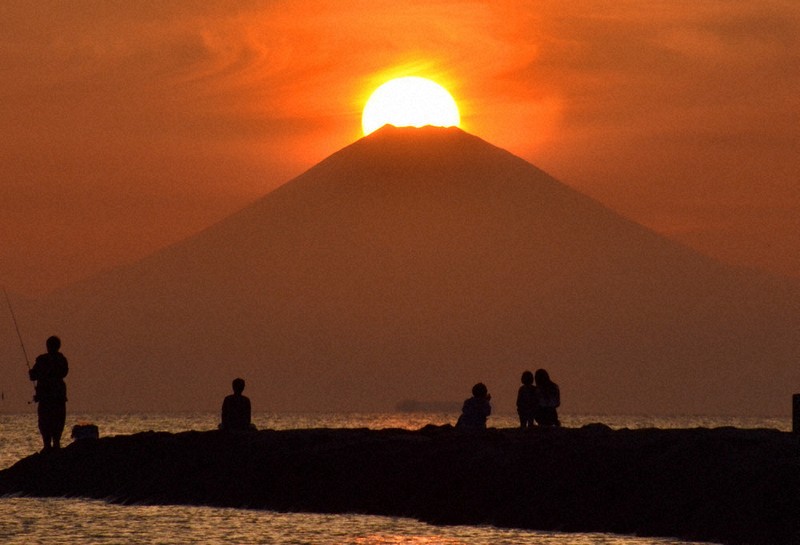 千葉・館山でオレンジに輝く「ダイヤモンド富士」観測、富士山まで直線距離で110キロ : 読売新聞。
