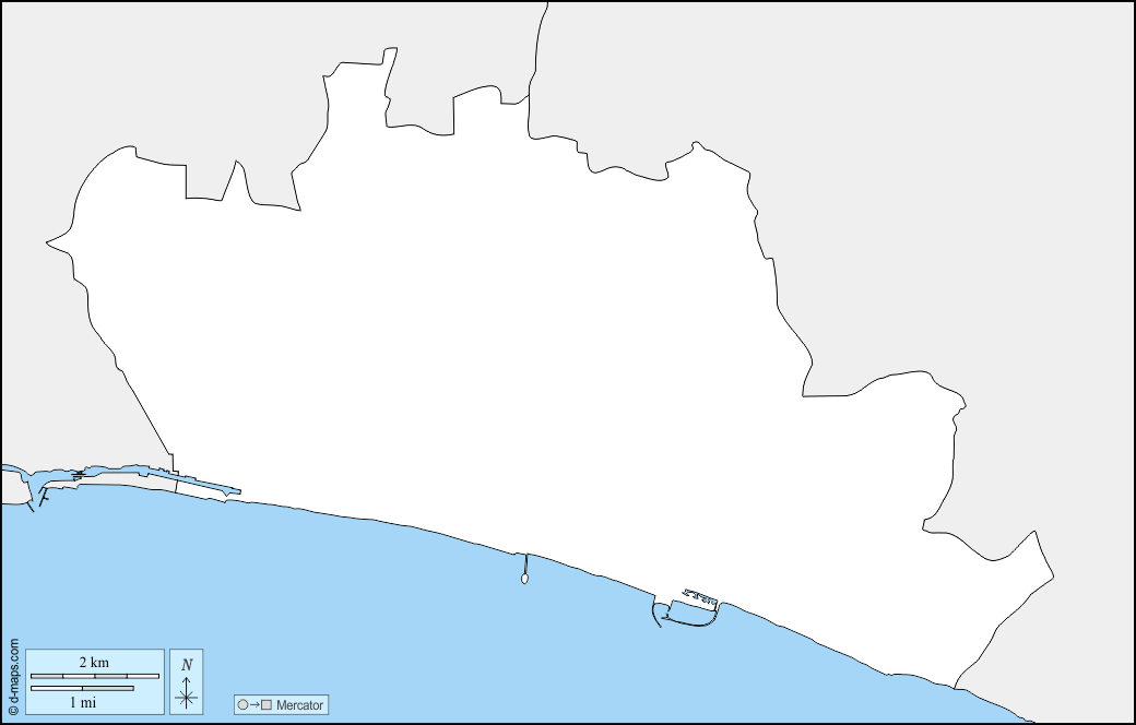ブライトン・アンド・ホヴ, d-maps.com: 無料地図, 無料の空の地図, 無料のアウトラインマップ, 無料のベースマップ , 輪郭, 近隣,道路, 名前。
