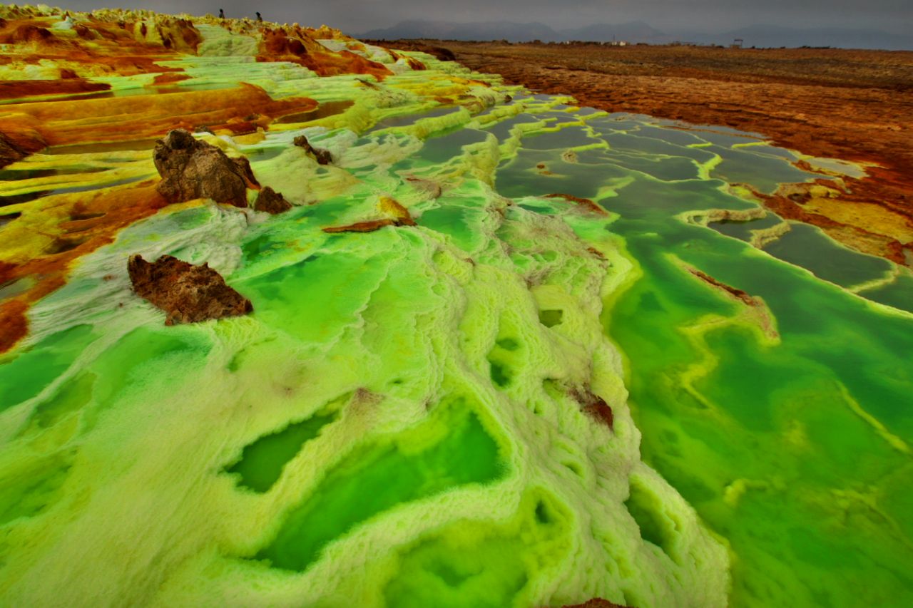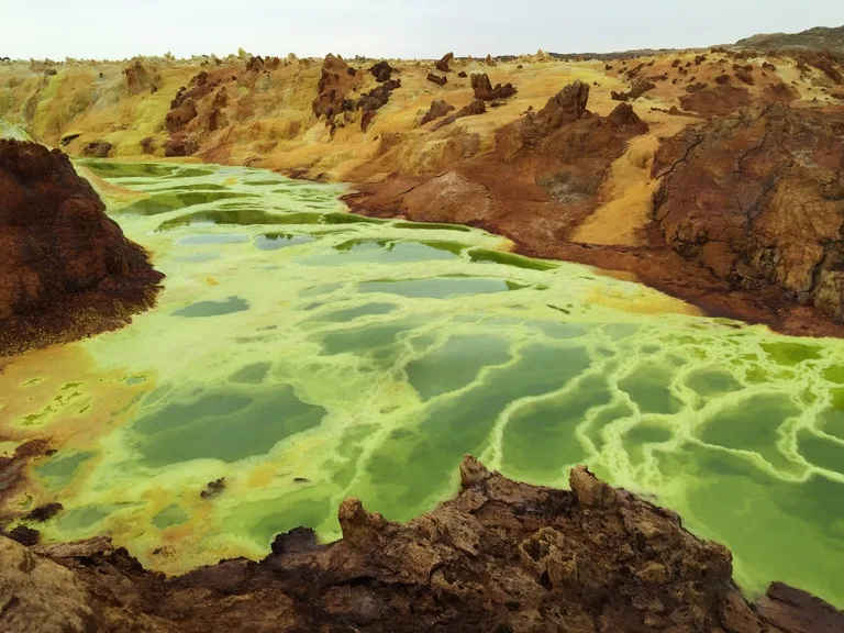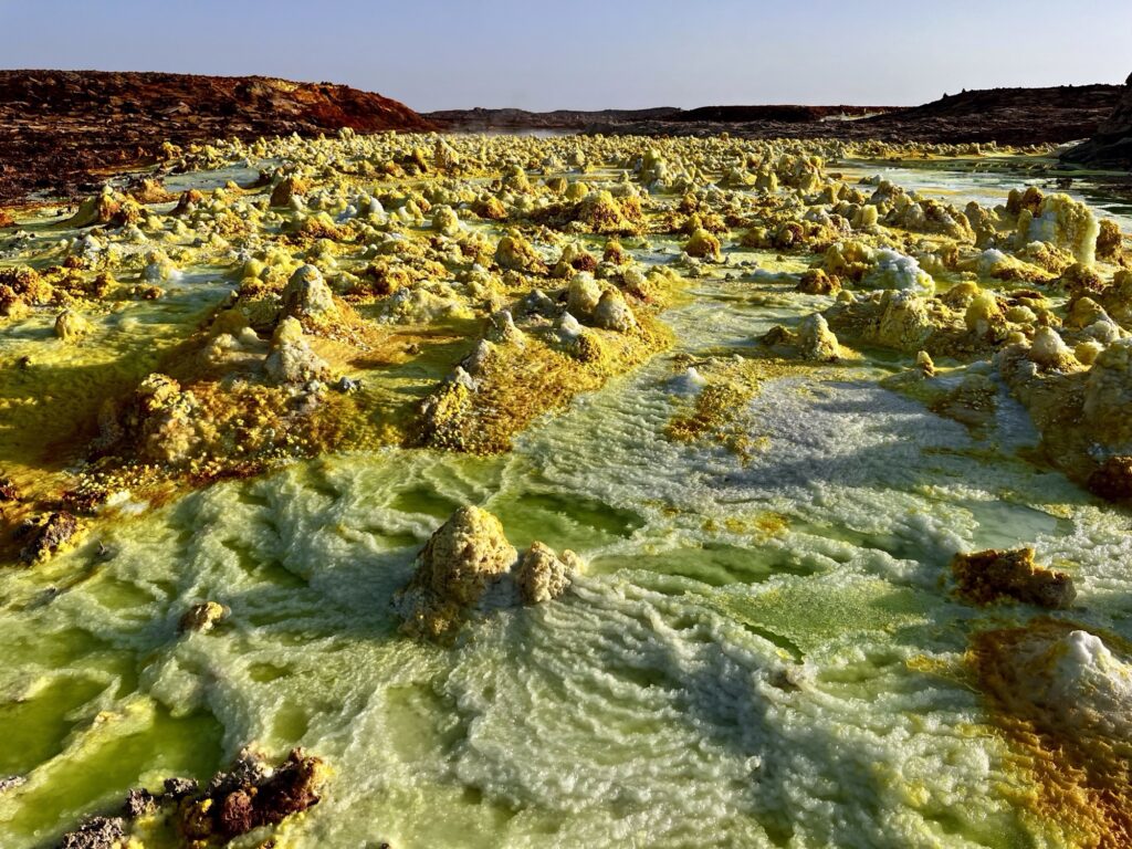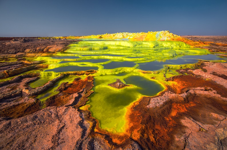 エチオピア 地球とは思えない黄色や緑色の景色が広がる「ダロール火山」。