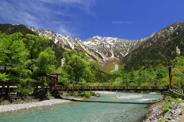 新緑の上高地 梓川と河童橋 長野県 松本市の写真素材FYI05045199ストックフォトの Qlean Market キュリンマーケット。