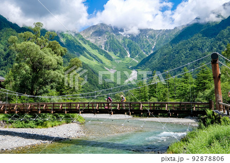 長野県松本市上高地河童橋からの梓川と穂高連峰の写真素材92878806- PIXTA。