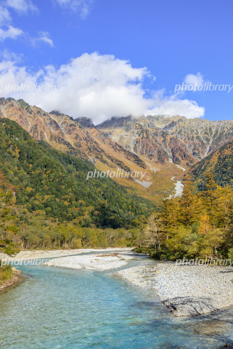 秋の上高地 穂高連峰と河童橋 長野県松本市 写真素材6243926- フォトライブラリ。