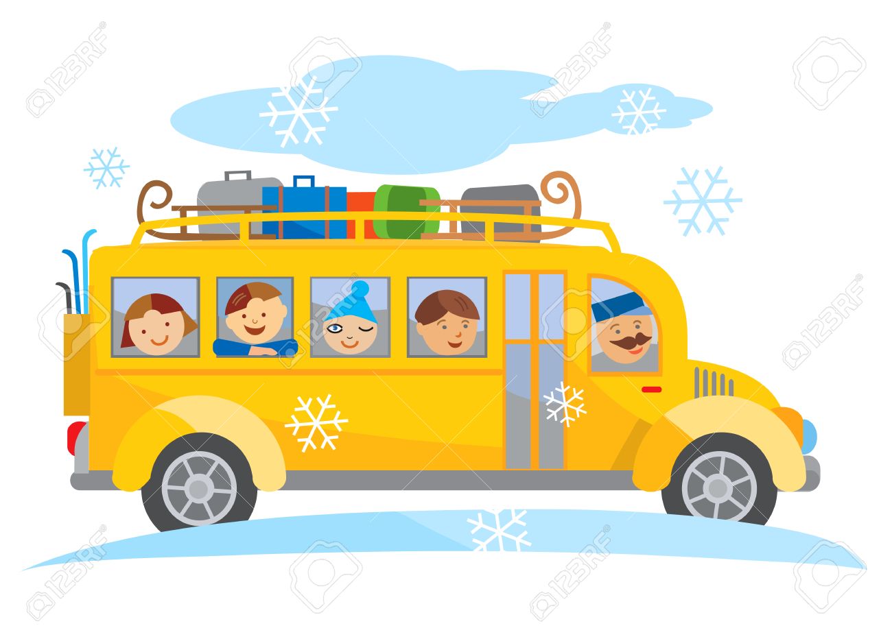 スクールバス冬学校旅行漫画。黄色のスクールバスが冬の修学旅行で旅行の漫画。使用可能なベクトル。のイラスト素材・ベクター Image 51219774。