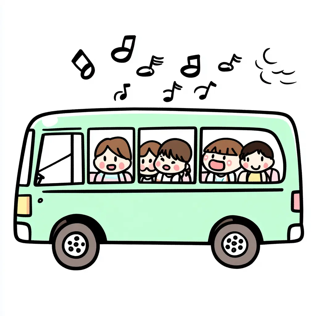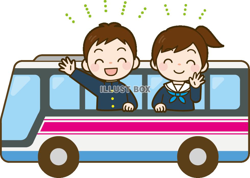 バスで移動する修学旅行の学生のイラストいらすとマッピング。