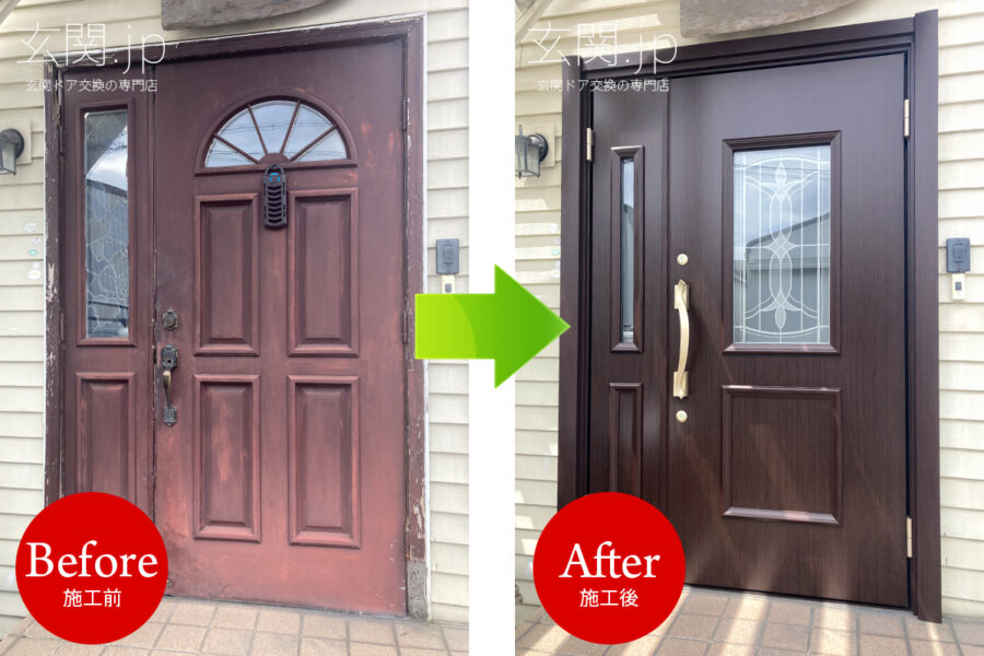 LIXILリシェントD41型 アメリカ製の木製玄関ドアを木目調のリシェントで交換 千葉県船橋市の工事事例玄関ドア・窓リフォーム全国1位の技術と価格玄関ドアマイスタ。