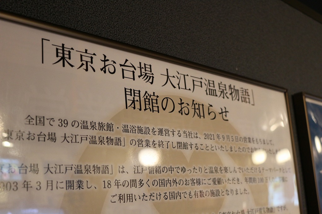 2021 東京お台場の大江戸温泉物語が閉館!クローズの理由は?最終。