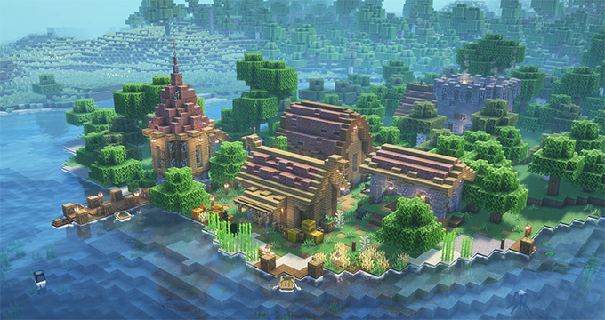 Minecraft 川沿いの村ないさ さんのイラスト - ニコニコ静画 イラスト。