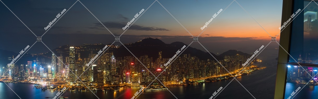 SKY100 天際100 から見る日没後の香港島・セントラル 中環 ~西湾のパノラマ風景香港の写真素材なら SnapHouse HK~香港写真素材屋~。