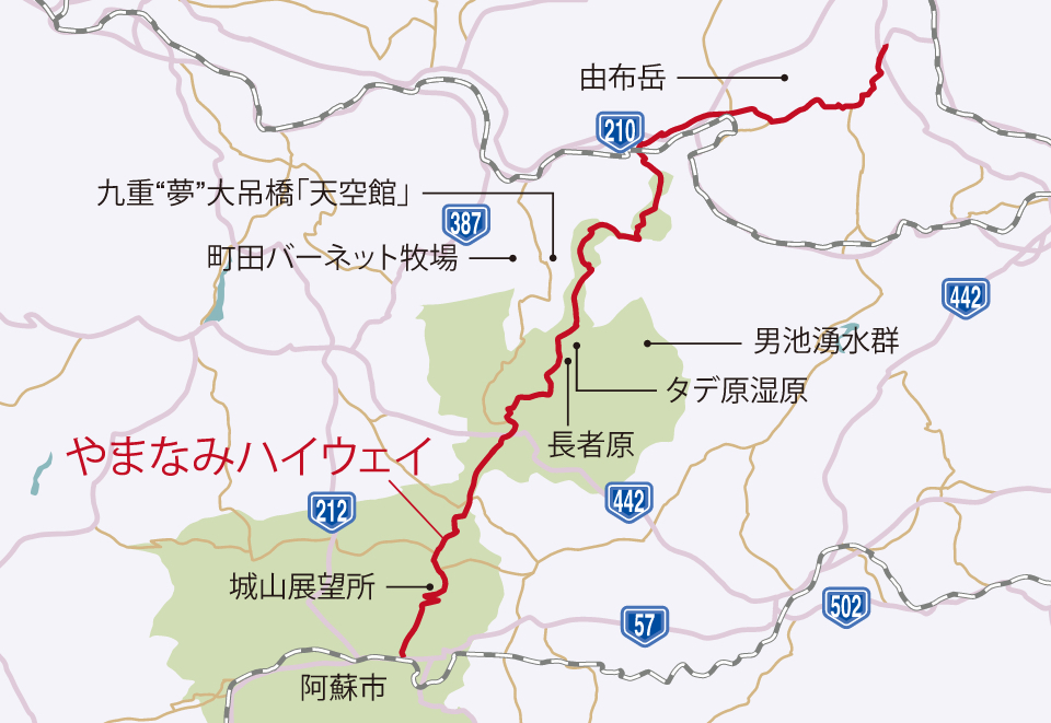 やまなみハイウェイ くじゅうの周辺スポット・アクセス・口コミ - Prism Japan。