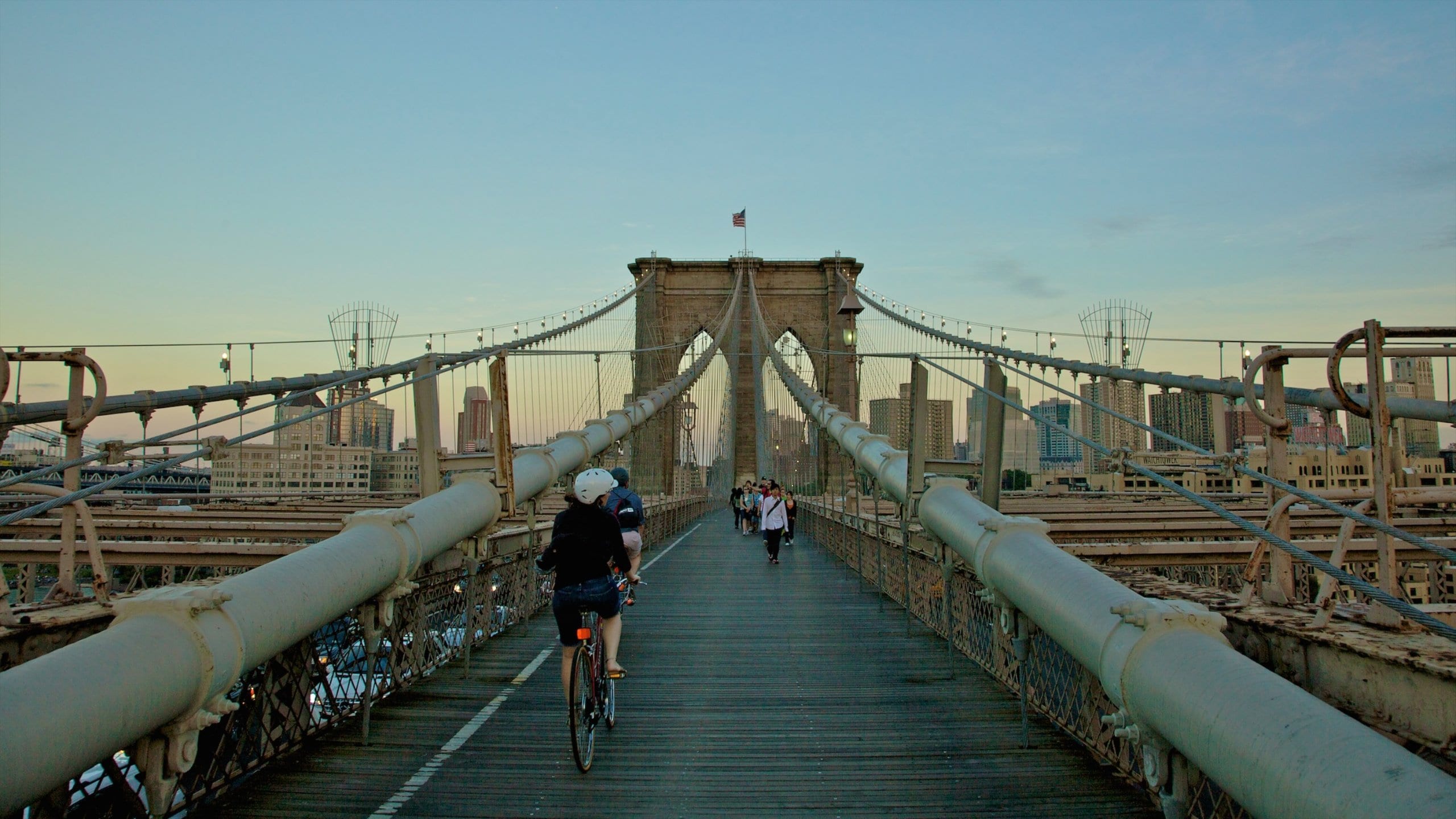 夕暮れ時にブルックリン・ブリッジを歩いて渡るニューヨークお散歩通信。