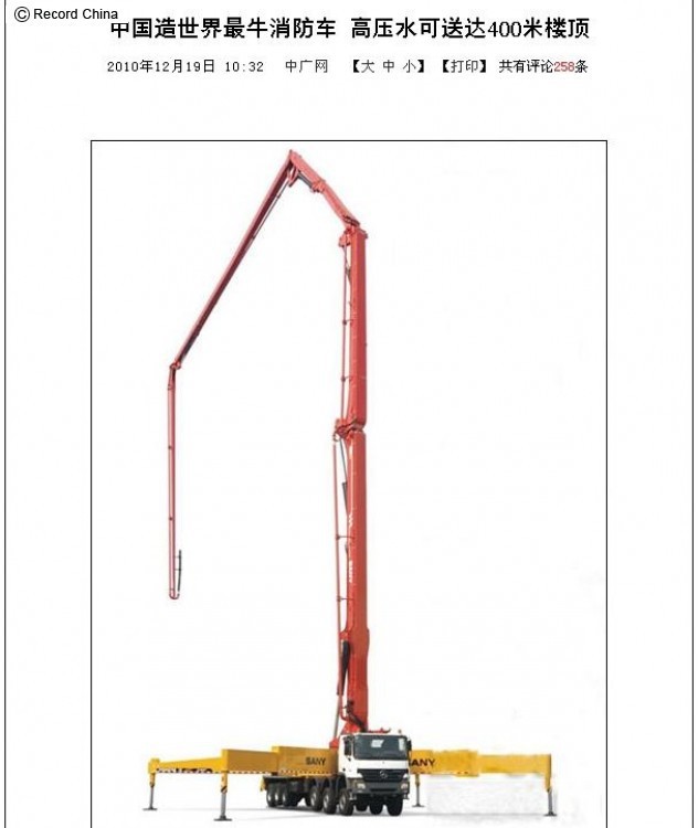 世界最長のはしご車が間もなく完成、高さ400メートルまで放水可能に―中国。